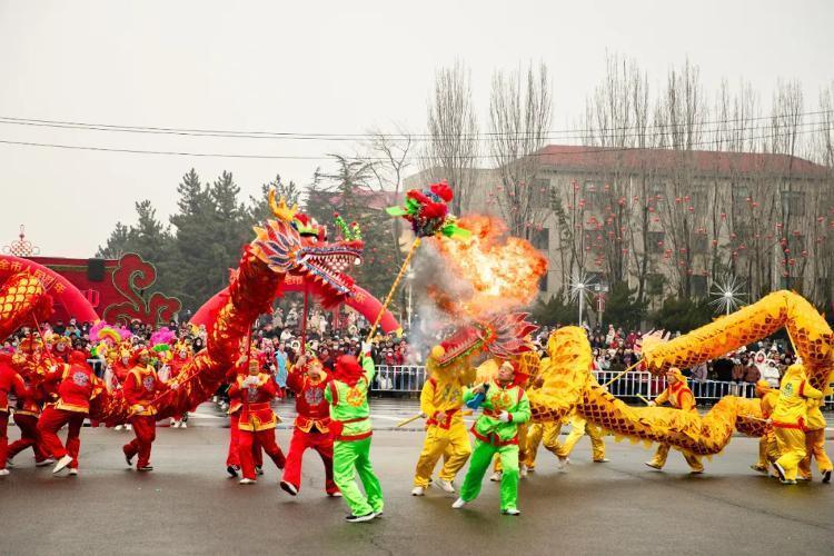在山东威海乳山市的街头,26米长的两条金龙在鼓乐声中翻腾起舞,龙首喷出熊熊烈焰,夏西村非遗火龙大秧歌艺术团以“火龙吐焰”特技点燃全场,现场爆发出雷鸣般的喝彩。乳山市民王淑娟抱着孩子挤在观演人群前列,手机镜头全程记录着火龙翻飞的壮观场面。这是2025年胶东四地大秧歌文化交流乳山展演活动现场,观众沉浸在欢乐祥和的节日氛围中。来自青岛胶州、烟台海阳、潍坊、威海文登及乳山本地的10支秧歌队、近500名演员同场竞技,秧歌表演者身着五彩斑斓的服装,手持彩绸、扇子,伴随着欢快的锣鼓声,翩翩起舞。